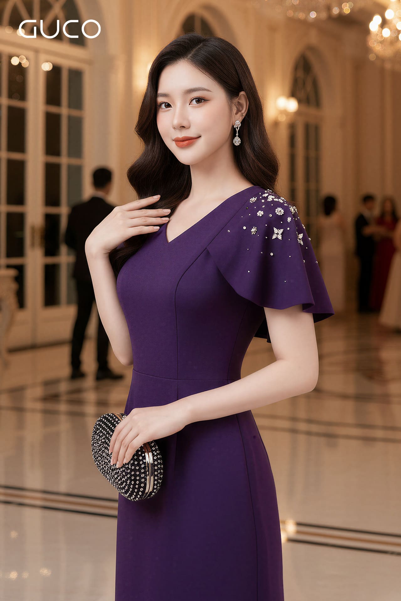 GUCO Đầm Tím Đính Đá Dự Tiệc - 5092
