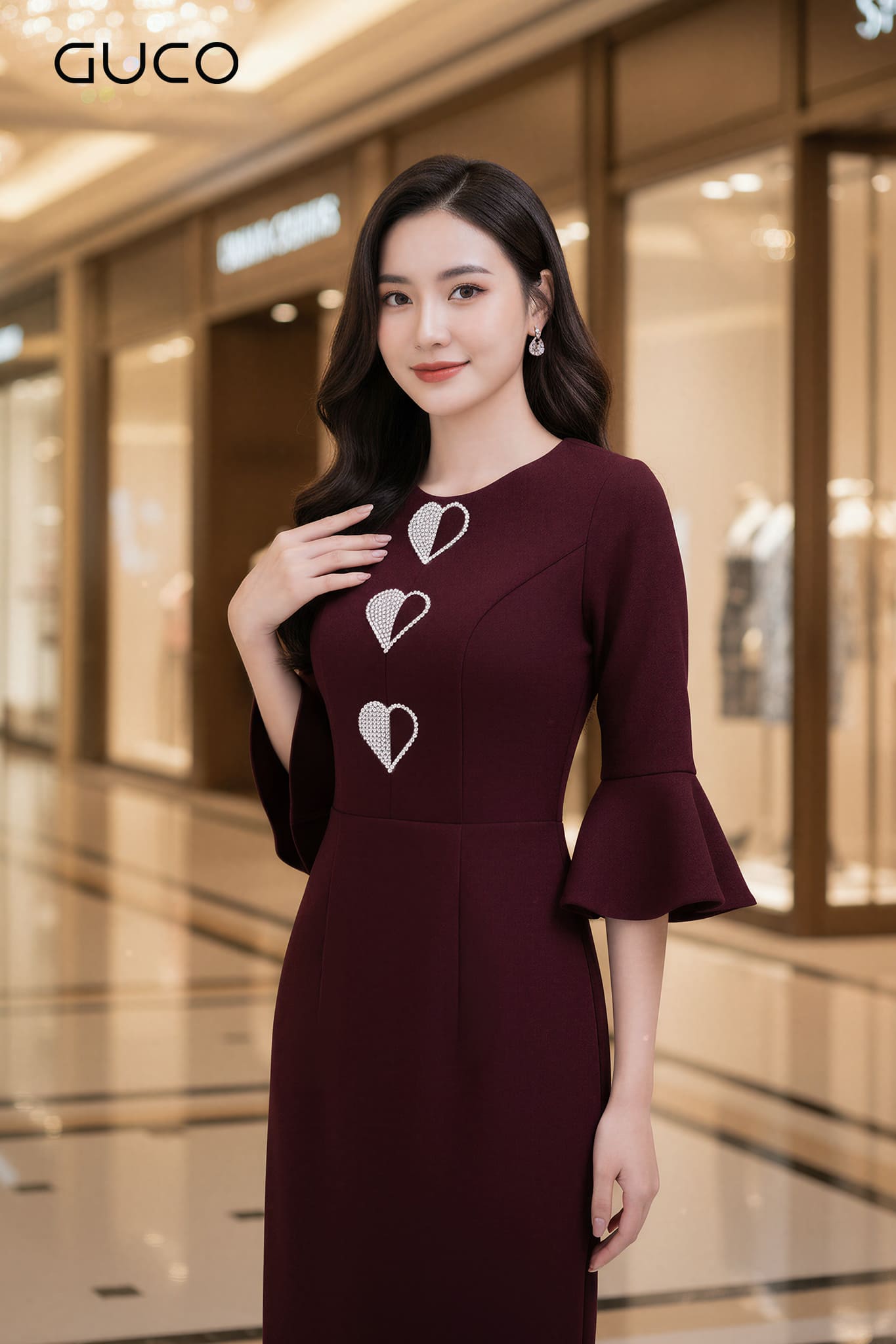 GUCO Đầm Body Đỏ Đô Đính Đá Trái Tim - 5083