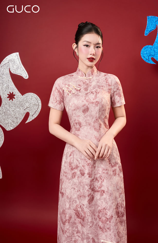 Thiết kế dáng A thanh lịch giúp tôn vòng eo, tạo cảm giác thon gọn và thoải mái khi di chuyển, phù hợp với nhiều vóc dáng. Phần cổ tàu truyền thống kết hợp cùng phom dáng hiện đại mang đến vẻ đẹp trang nhã, kín đáo nhưng vẫn nổi bật. Gam màu đỏ sang trọng cùng họa tiết gấm hoa dệt nổi giúp tổng thể trở nên cuốn hút, rất phù hợp cho các dịp lễ, tiệc, sự kiện quan trọng hay những buổi gặp gỡ trang trọng.