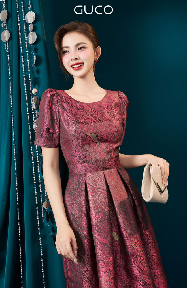 Mang đến vẻ đẹp quý phái và đầy cuốn hút, đầm xòe họa tiết tùng xếp li – màu đỏ là lựa chọn hoàn hảo cho nàng muốn nổi bật nhưng vẫn giữ được sự thanh lịch trong mọi dịp. Thiết kế tùng xếp li tinh tế giúp tạo hiệu ứng bồng bềnh, che khuyết điểm vòng hông và mang lại dáng váy thướt tha khi di chuyển.