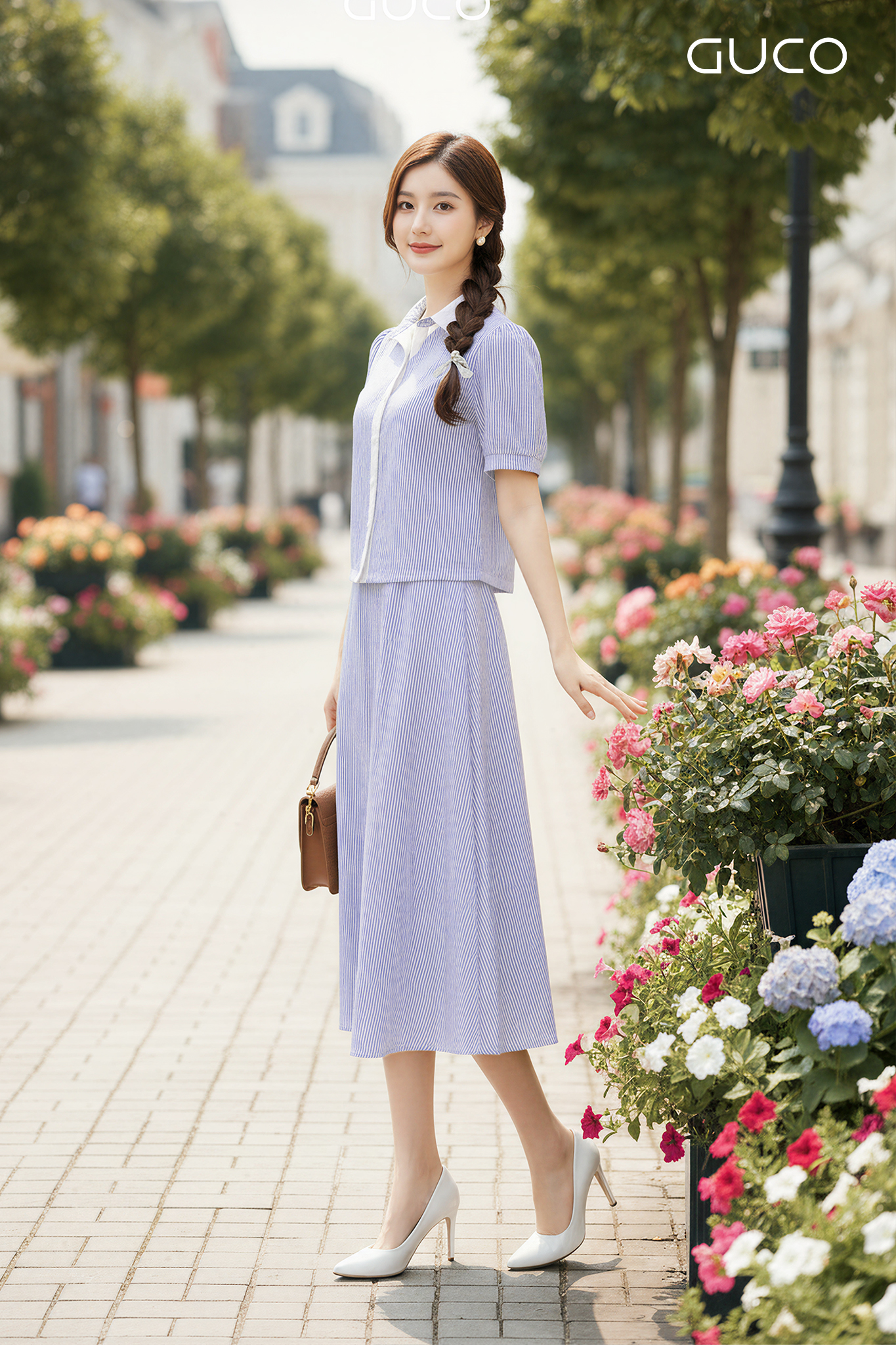 Mẫu áo sơ mi với họa tiết sọc trắng phối sọc xanh mang phong cách trẻ trung, thanh lịch và dễ ứng dụng trong nhiều hoàn cảnh. Thiết kế gọn gàng, chỉn chu giúp nàng luôn tự tin khi đi làm, đi học hay dạo phố.