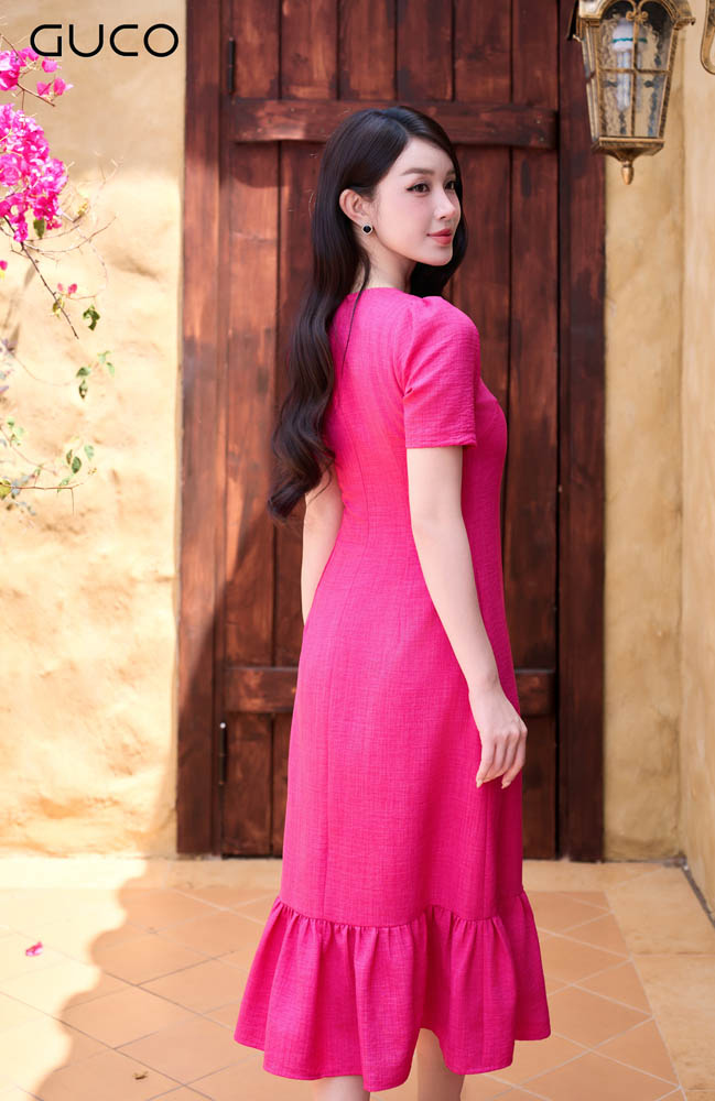GUCO Đầm Suông Hồng Đuôi Bèo – Dịu dàng, bay bổng và đầy nữ tính