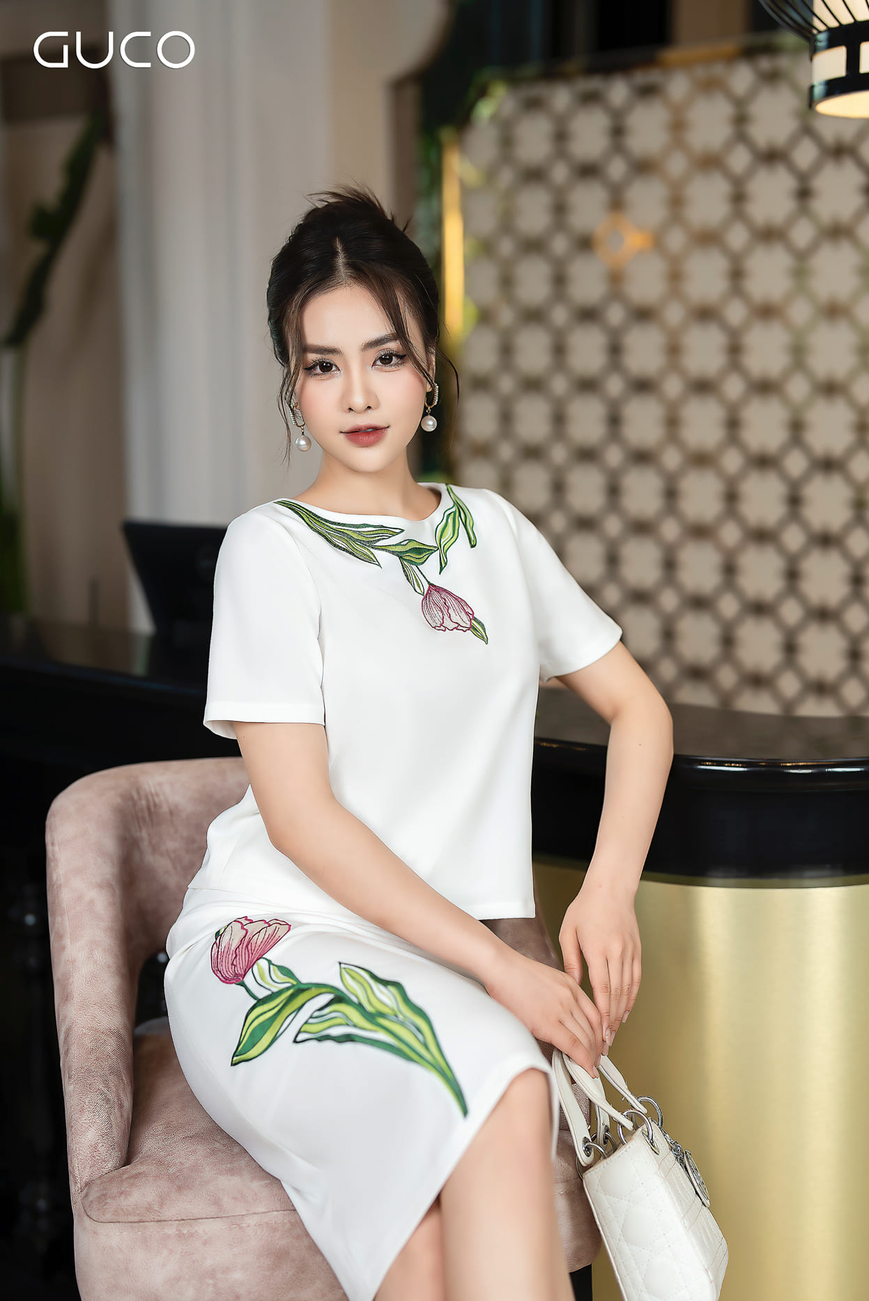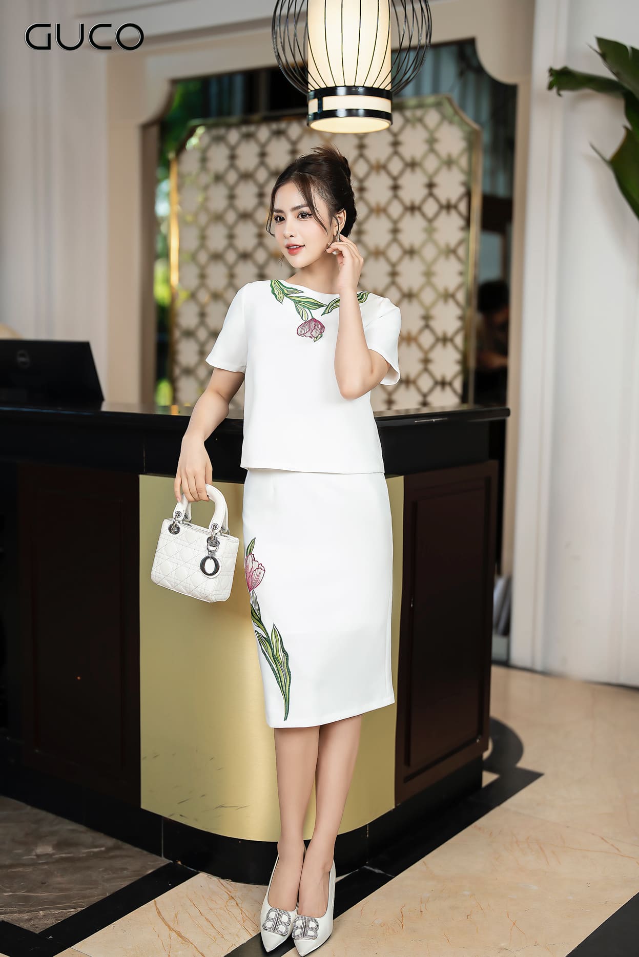 Chân váy thêu hoa Tulip - Trắng V10009