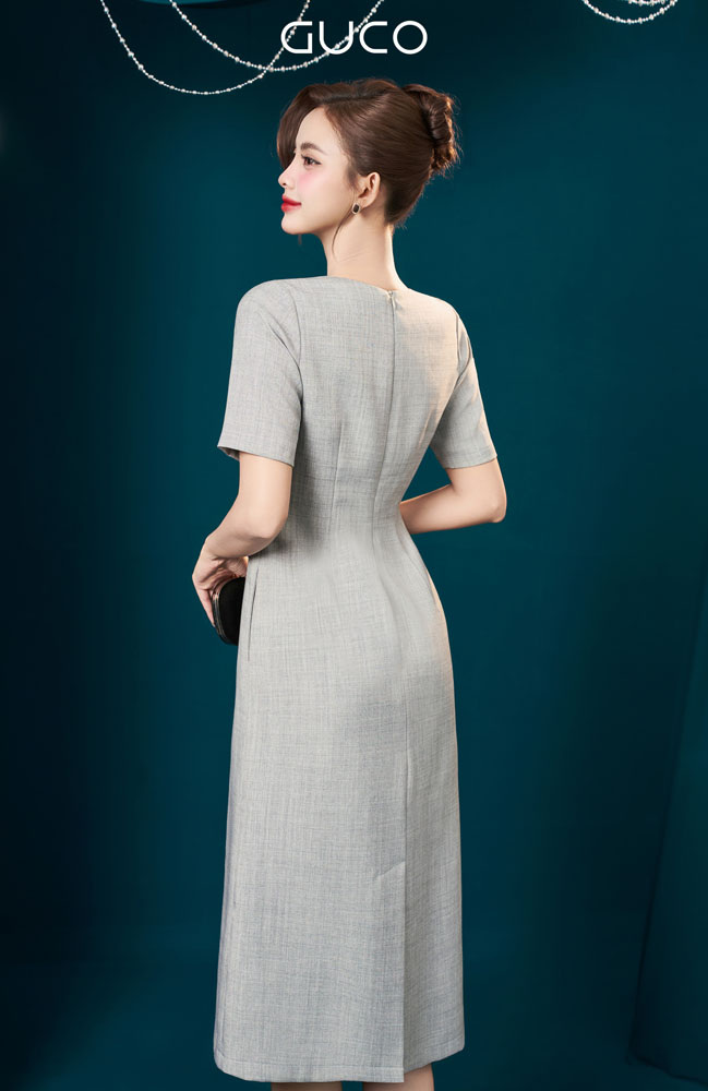 ✨ ĐẦM A CỔ TRÒN ĐÍNH ĐÁ 1 BÊN – XÁM THANH LỊCH & SANG TRỌNG ✨