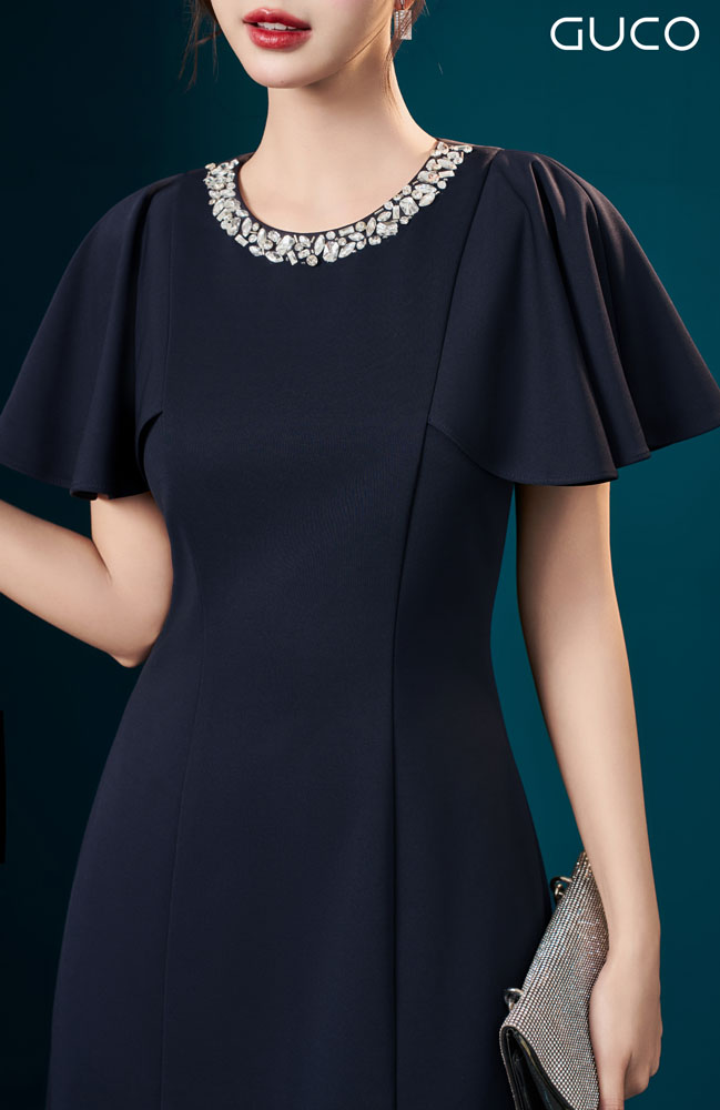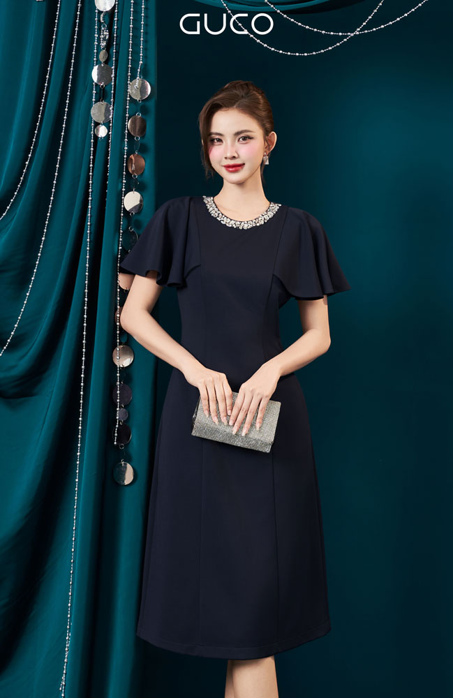 ĐẦM A CỔ TRÒN TAY CÁNH TIÊN - XANH ĐEN - 5012