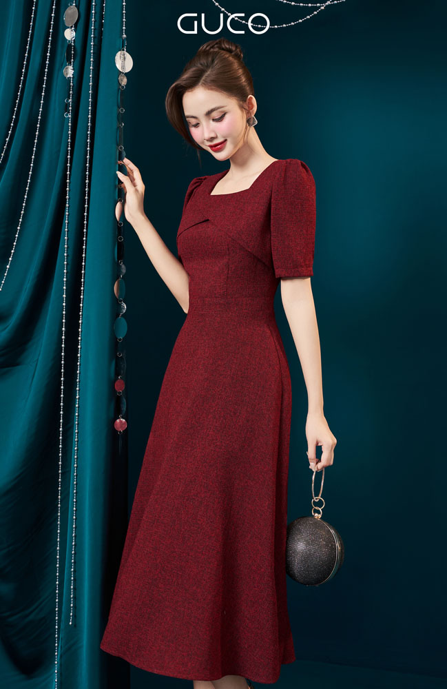 ĐẦM XÒE CỔ VUÔNG CÁCH ĐIỆU - ĐỎ - 5001