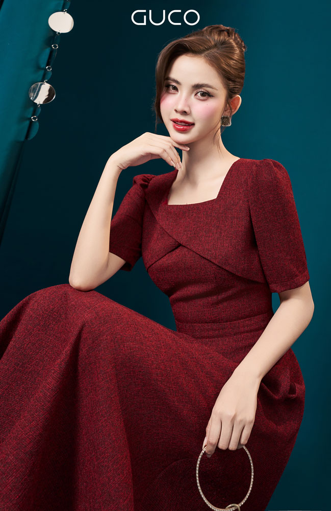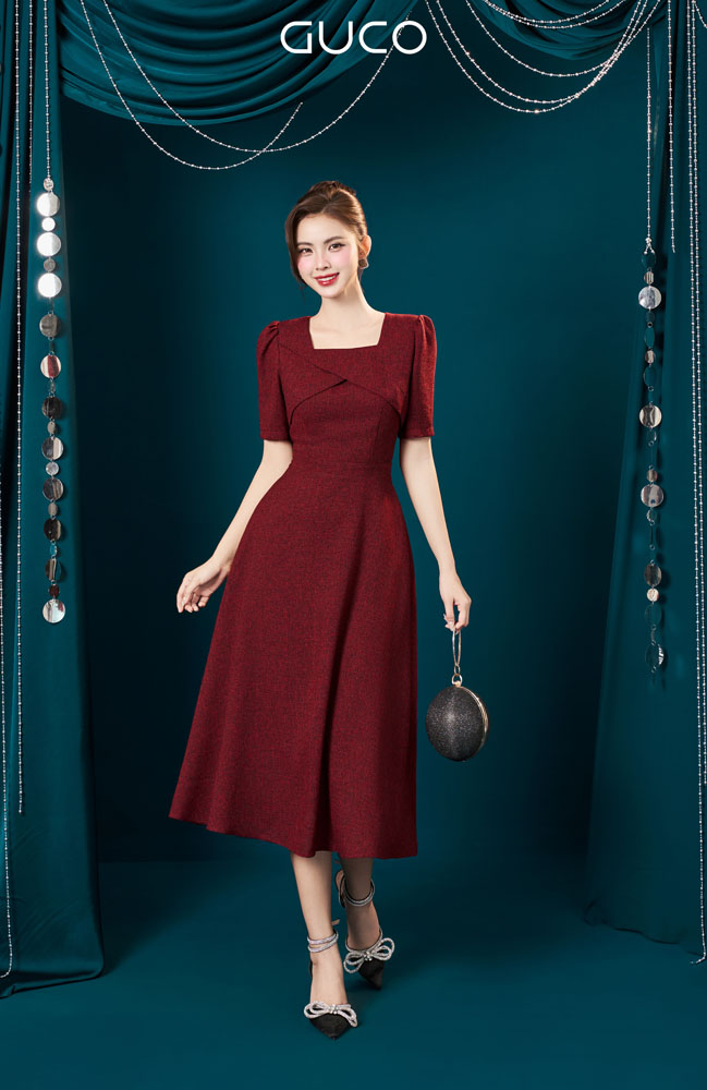 Nổi bật với vẻ đẹp thanh lịch pha chút cổ điển, đầm xòe cổ vuông cách điệu – màu đỏ mang đến diện mạo cuốn hút cho nàng trong mọi dịp đặc biệt. Thiết kế cổ vuông giúp khoe nhẹ phần xương quai xanh tinh tế, tạo sự cân đối cho phần vai và tôn lên vẻ nữ tính dịu dàng.