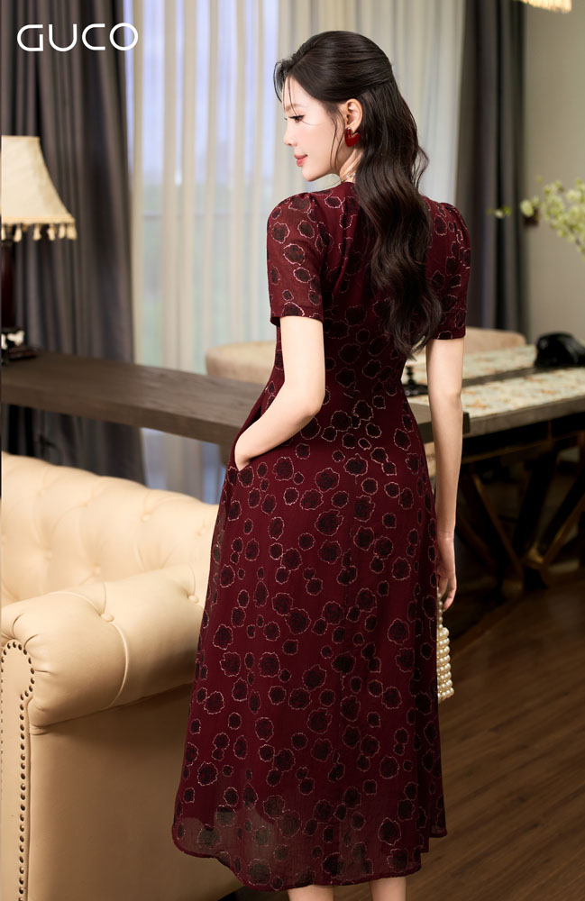 Tỏa sáng đầy cuốn hút với mẫu đầm xòe hoa cổ tròn tay ngắn dáng dài, thiết kế mang đến nét đẹp nữ tính, trẻ trung nhưng vẫn vô cùng sang trọng. Gam đỏ nổi bật giúp nàng thu hút ánh nhìn ngay từ khoảnh khắc đầu tiên, phù hợp cho cả tiệc, họp mặt hay dạo phố thanh lịch.